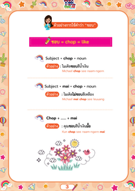 นิทานที่นำคำศัพท์ สำคัญจำเป็น และเจอบ่อย ๆ ในชีวิตประจำวัน มาใช้ในการเล่าเรื่องซึ่งมีทั้งคำภาษาไทย คำคาราโอเกะ และคำแปลภาษาอังกฤษ เพื่อใช้ในการฝึกพูดภาษาไทย สำหรับลูกครึ่ง ที่เริ่มต้นเรียนภาษาไทย ให้เกิดความรัก อยากพูด และเรียนภาษาไทย อย่างสนุกและมีความสุข