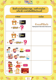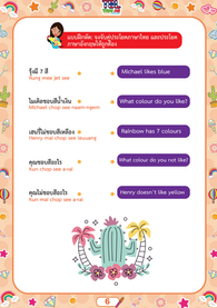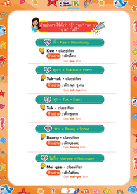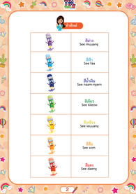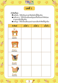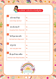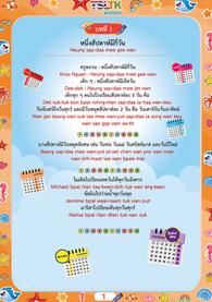 ทั้งคำภาษาไทย คำคาราโอเกะ และคำแปลภาษาอังกฤษ เพื่อใช้ในการฝึกพูดภาษาไทย สำหรับลูกครึ่ง ที่เริ่มต้นเรียนภาษาไทย ให้เกิดความรัก อยากพูด และเรียนภาษาไทย อย่างสนุกและมีความสุข
